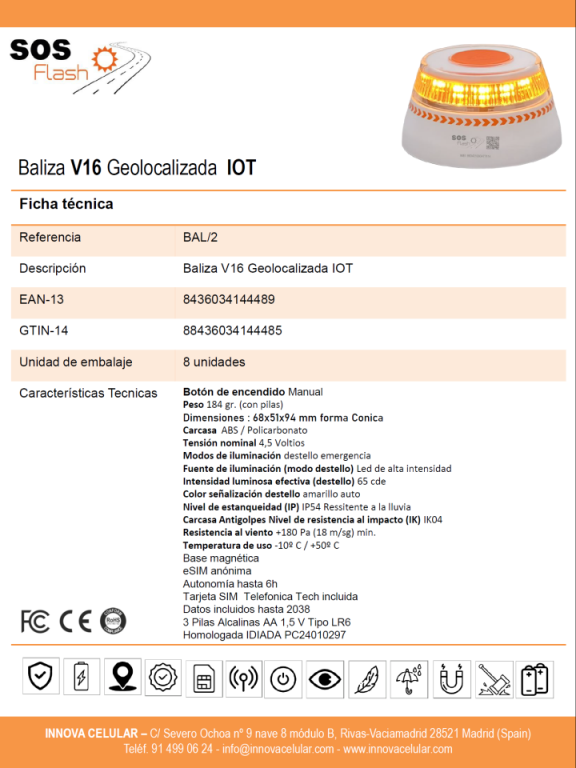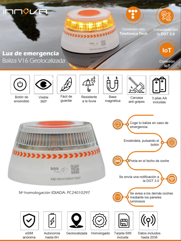 BALIZA COCHE V16 GEOLOCALIZADA TELEFÓNICA