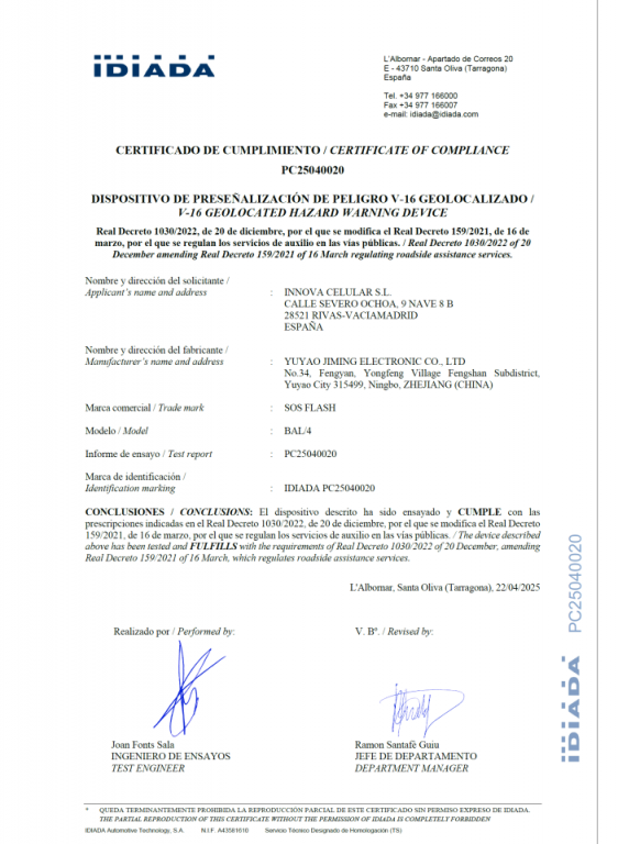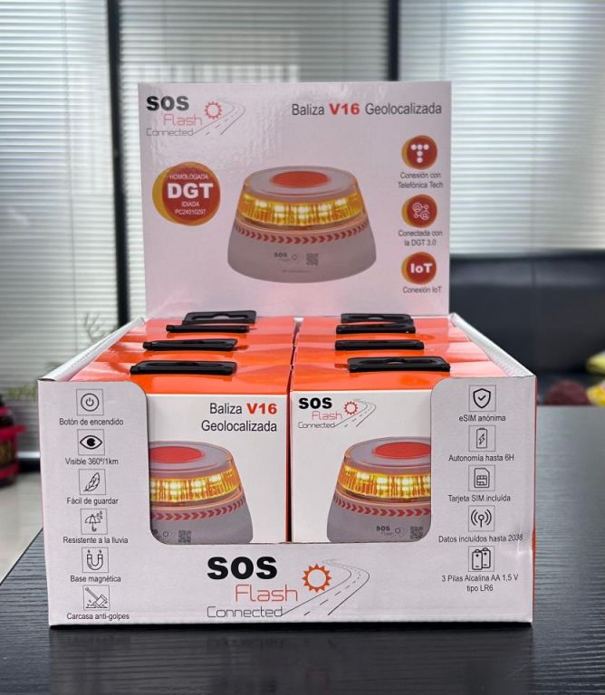 Baliza SOS FLASH homologada por la DGT con el nº : IDIADA PC25040020El uso de las balizas V16 será obligatorio y sustituirá los triángulos y balizas luminosas no conectadas a partir de 2026.