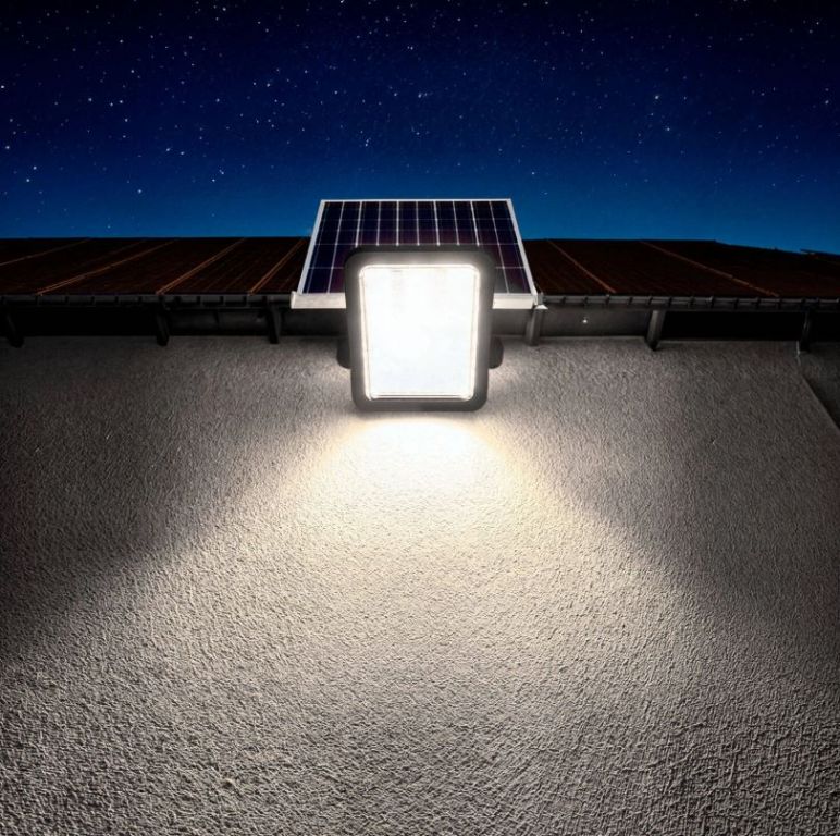 Kit que incluye proyector solar LED con batería de litio integrada de alta potencia, panel solar, mando a distancia y herrajes para su instalación. Incorpora sensor / detector de luminosidad. Ideal para iluminar de manera automatizada y sin necesidad de corriente eléctrica cualquier zona de exterior.