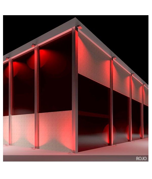 El proyector tiene un grado de protección IP65 (válido para polvo y humedad en exteriores), además de ser suficientemente robusto para las exigencias mecánicas requeridas. Este proyector emite una luz en color rojo.